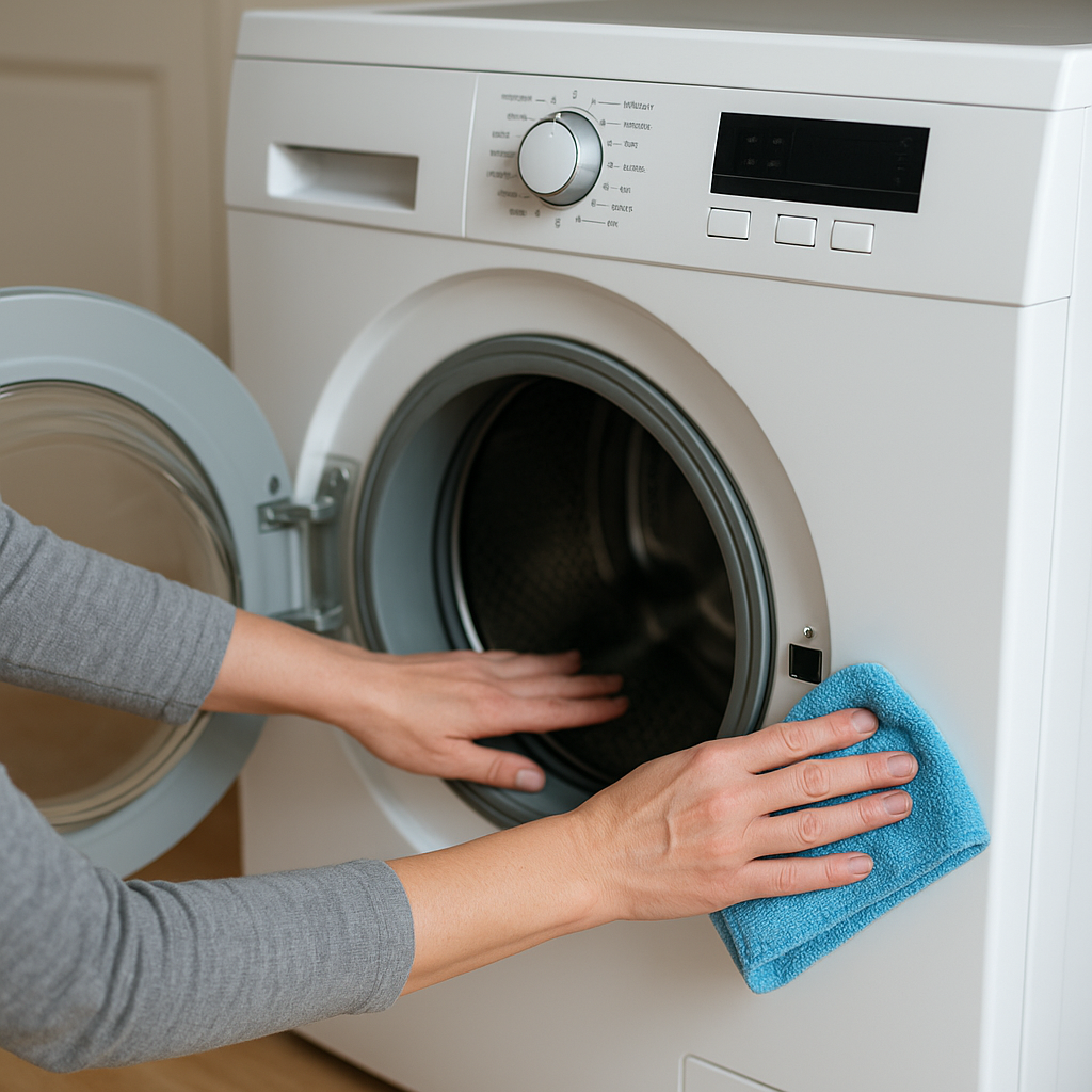• Czyszczenie bębna – raz na miesiąc przeprowadzić cykl z pustą pralką, używając specjalistycznego środka odkamieniającego lub octu.