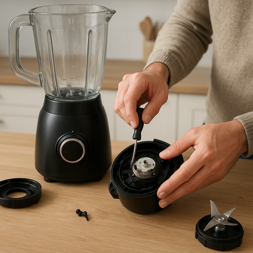 Przy pracy z urządzeniem elektrycznym kluczowe jest zachowanie bezpieczeństwa. Zawsze odłącz blender od sieci na czas naprawy, noś rękawice ochronne i okulary. Po zakończonych czynnościach montażowych: