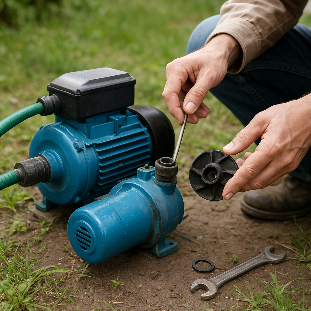 Zużyte uszczelnienia powodują utratę podciśnienia wewnątrz pompy, co uniemożliwia zasysanie wody. Aby je wymienić:
