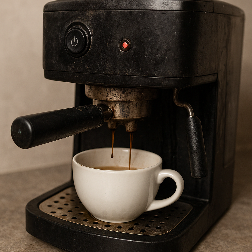 Jednym z pierwszych sygnałów, które wskazują na problemy z pompą, jest niższe niż zwykle ciśnienie podczas przygotowywania naparu. W rezultacie kawa może spływać kroplami lub w ogóle nie wydobywać się z grupy zaparzającej. Przyczyną tego stanu mogą być zanieczyszczone przewody, uszkodzony zawór lub zużyta membrana pompy.